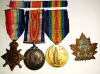 A 1914-15 Star, bronze, full size, reverse impressed 11140 PTE H. HARPER. 4/CAN:INF:, original ribbon. British War Medal, silver, full size, rim impressed 11140 PTE. H. HARPER. 4-CAN.INF., original ribbon, dark patina. Victory Medal, bronze gilt, full size, rim impressed 11140 PTE. H. HARPER. 4-CAN.INF., original ribbon. With sew on ribbon bar.