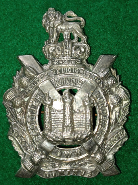 Scottish - The King's Own Scottish Borderers Victorian QVC Glengarry Cap Badge, Pin-back