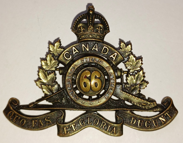 12-66, 66th Overseas Field Battery Canadian Field Artillery Cap Badge