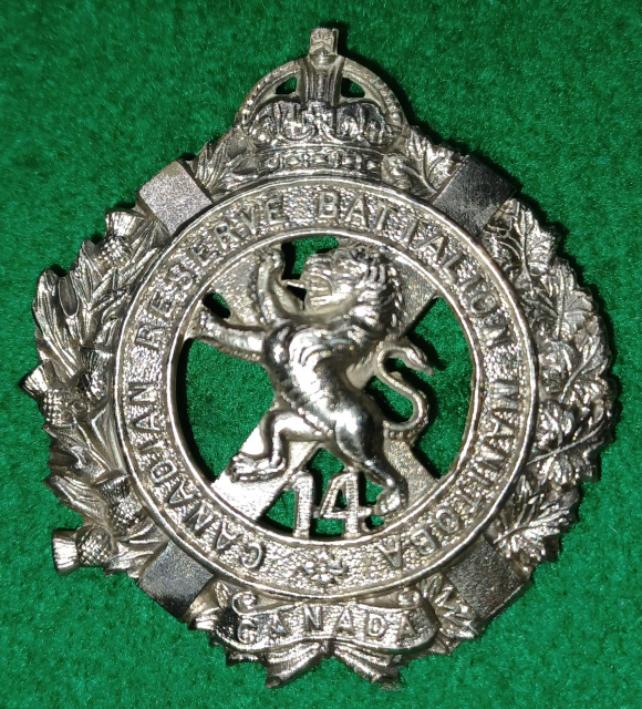 The 14th Reserve Battalion was formed by the amalgamation of the 108th Bn., 179th Bn. and the 226th Infantry Battalion under command of Lieutenant-Colonel J.R.Snider supplying reinforcements to the 16th Bn. and 43rd Infantry Battalions. During the period of its operations the 14th Reserve Battalion absorbed the 174th Infantry Battalion (May 7th 1917). In October 1917 the 14th Reserve Battalion was absorbed into the 11th Reserve Battalion in October 1917.