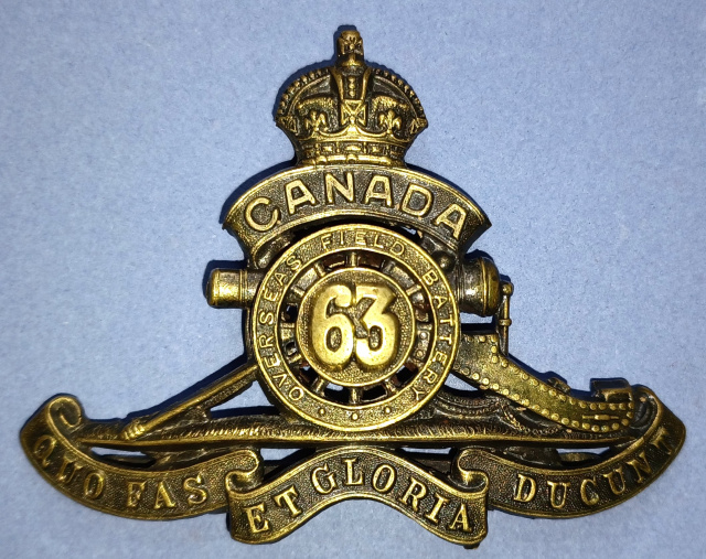 12-63, 63rd Overseas Depot Battery (Guelph and London) Canadian Field Artillery Cap Badge
