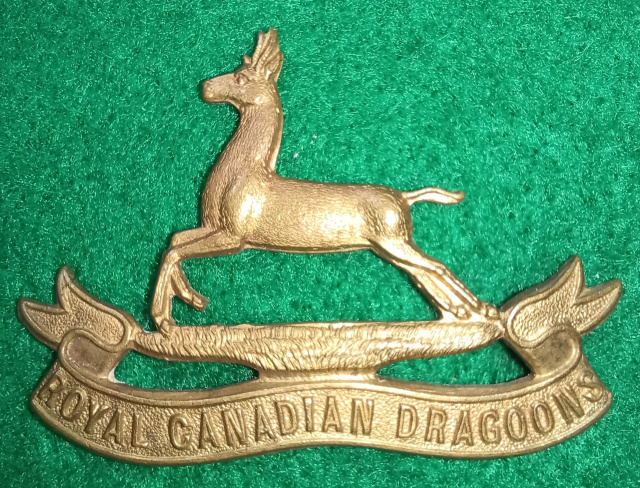 10-2, Royal Canadian Dragoons Cap Badge 2 lugs to the reverse, one is fractured on one side.