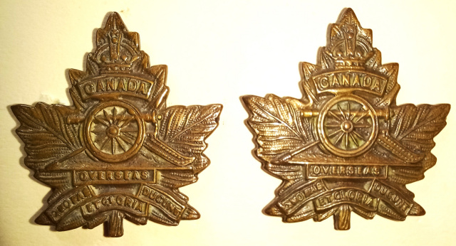 12-3, Canadian Field Artillery Maple Leaf Type Collar Badge Pair