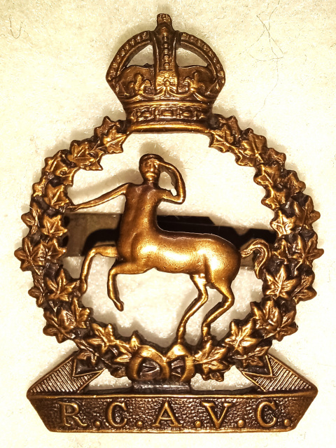 S9 - Royal Canadian Army Veterinary Corps Officer's OSD Bronze KC Cap Badge