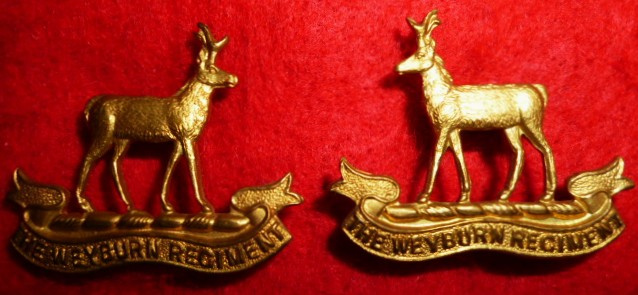 M141a - The Weyburn Regiment Collar Badge Pair 2 lugs each "Made in England" maker's plates, probably Gaunt.