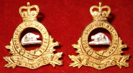 Royal Canadian Army Pay Corps QC Officer's SG Collar Badge Pair