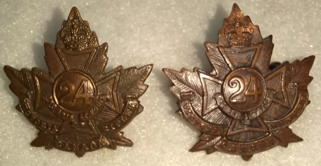 24th Battalion, (Victoria Rifles) Officer's OSD Collar Badge Pair